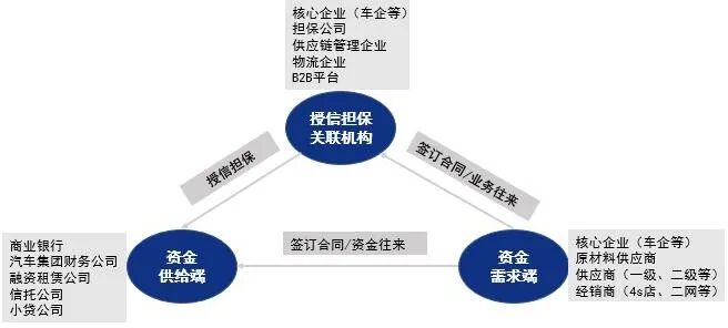 汽车供应链金融领域不乏世界500强企业,他们能够快速申请到银行或资金机构的金融服务。而那些主机厂商上游的汽车零部件供应商,由于体量和信用差异较大,金融信用不强,难以拿到成本较低、渠道稳定的融资。为了缓解资金困难,下游汽车经销商通常会选择与汽车融资租赁公司合作购车,但依然存在不少问题,如汽车经销商和汽车融资租赁公司的应收账款因诸如购车手续复杂、银行审核等消费者端在购车时出现的各种问题导致这部分资金无法迅速注入到产业链中带来效益。