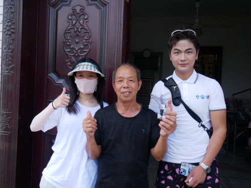 实践队员们带着相机和便携式照片打印机,走村入户,为老人们免费拍摄并现场打印照片。镜头前,老人们或是夫妻相互依偎在自家老屋的门槛上,向我们讲述年轻的故事时候;或是与三五老友并肩而立,笑容灿烂,仿佛回到了青春年少;还有的老人独自摆出面带微笑、目光悠远的姿势,展示着独特的乡村魅力。摄影师耐心地引导着老人们调整姿势、捕捉表情,每一个快门按下,都定格下了老人们最美的瞬间。