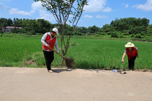 在贯塘乡板仓村村道旁,党员干部率先垂范,带着镰刀、锄头、铁锹等工具冲锋在前,与自发参与的群众分工协作、默契配合,清扫路面垃圾,清理沟渠杂草,现场一派繁忙。而同样的场景也在其他村庄上演。