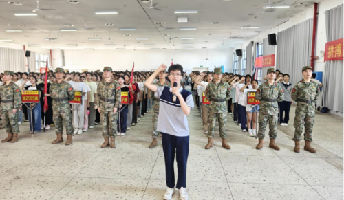 在张杰栋的带领下,全体参训新生庄严宣誓。铿锵有力的誓言回荡在会场,展现六中学子刻苦训练、团结拼搏的坚定决心。