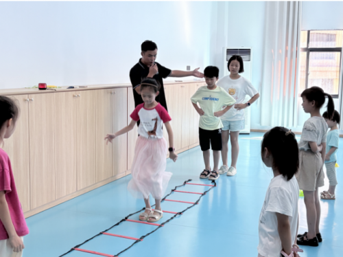 “跳得越有力,护绿越有劲儿!”跳绳比赛环节,孩子们以小组为单位展开竞技,飞舞的绳子划出活力弧线,现场欢呼声不断。老师适时引导:“健康的体魄,是参与环保实践、守护绿色家园的基础。”对表现突出的小朋友,老师发放专属奖品,一张张笑脸洋溢着青春朝气与环保热情。