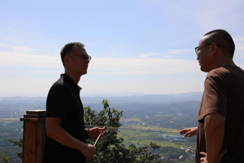 衡山县相关部门陪同考察团在紫盖峰片区实地考察(旷雨澄摄)