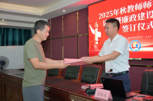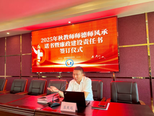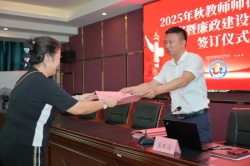 会议第三项议程中,纪委书记匡致远主持《廉洁承诺书》签订仪式,接受全体教职员工及领导干部提交的《师德师风承诺书》与中层以上干部《廉政建设责任书》。他指出,承诺书的签订不仅是一种仪式,更是一份责任与担当,希望全体教职工以承诺为准则,严守师德底线,筑牢廉洁防线。