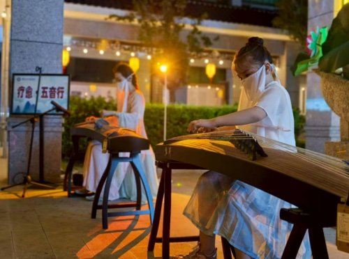 夜市还特别设置了五音•疗愈区,一曲《高山流水》带走了白天的疲惫,让人沉浸其中不能自拔。