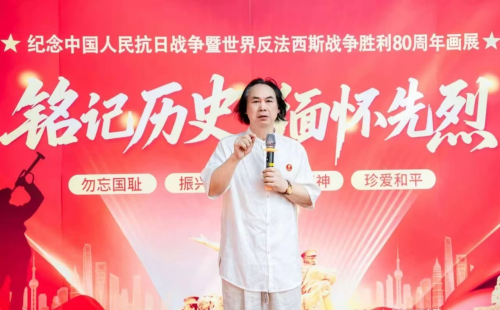 2025年8月30日,时值中国人民抗日战争暨世界反法西斯战争胜利80周年之际,“铭记历史·笔墨山河——抗战主题书画展”在长沙岳麓后山文化艺术中心隆重开幕。曾昭才、杨建国、姜智、刘湘豫、谢晓钢等五位艺术名家以笔墨铸魂,一百余幅油画、书法、国画等艺术门类的精品力作,再现烽火岁月,镌刻民族精神,为观众开启了跨越时空的历史对话。