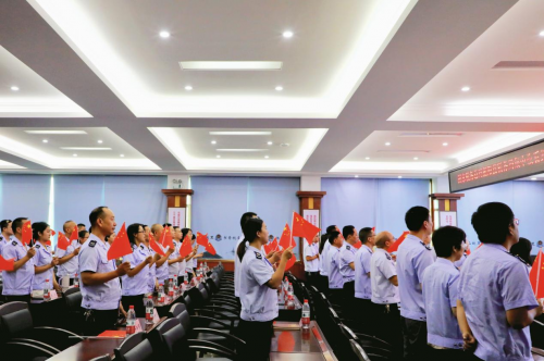 大会直播结束后,衡阳县税务局特别组织了合唱环节。全体干部集体起立,手中挥舞着鲜艳的小红旗,随着伴奏齐声高唱《歌唱祖国》。“五星红旗迎风飘扬,胜利歌声多么响亮……”激昂的歌声在会议室里回荡,大家眼神坚定、声音洪亮,将对祖国的热爱与崇敬,融入每一句歌词中。“唱这首歌的时候,感觉浑身都充满了力量。作为新时代税务人,我们要把这份爱国情怀转化为工作动力,把税收工作做好,为国家发展添砖加瓦。”青年干部资华丽说道。