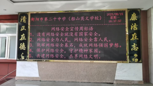 为进一步提升师生网络安全防护意识,有效防范网络风险,9月16日,在2025年国家网络安全宣传周校园日活动当天,衡阳市第二十中学举行国家网络安全宣传周校园日活动。