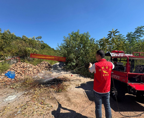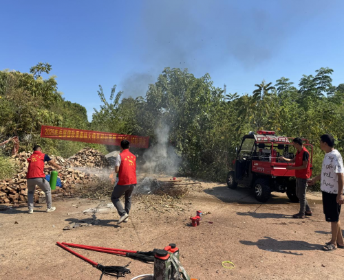 演练环节直击“实战”,现场模拟森林火灾突发场景,让参训人员在实战中锤炼技能。随着模拟火情信号发出,参演人员分为现场扑救、安全撤离、余火清理三个组,迅速携带灭火器、灭火炸弹、灭火拖把等装备,驾驶山地摩托车在模拟火情现场集结,按照预设分工有序展开扑火作业——现场扑救组负责操控灭火器械、驾驶山地摩托车扑灭明火,安全撤离组负责清理周边易燃物开辟道路撤离参演村民,余火清理组负责熄灭余火,各环节衔接紧密、配合默契,全程紧张有序。整个演练过程不仅检验了参训人员对灭火装备的实操能力,更提升了多群体协同处置的应急响应效率。