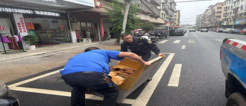 镇城管队重点对主次干道、农贸市场周边及红色旅游景区沿线进行集中整治,规范商户经营秩序,清理乱堆乱放,拆除违规广告牌,全面提升镇容镇貌。镇环卫所分组作业,对辖区内20余处卫生死角实施“人工+机械”协同清理,加强对道路两旁的垃圾桶、城市家具等公共设施的清洗维护,确保生活垃圾日产日清,全力打造干净靓丽的城市环境。同时,水口山镇以规范悬挂国旗为抓手,突出节日文化特色,着力营造庄严热烈、团结奋进的节日氛围。