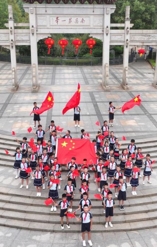 活动中,学子们手持国旗,神情专注,在衡阳抗战纪念城、回雁峰广场、潇湘八景广场、南岳第一峰牌坊等具有深厚历史与文化底蕴的景点前放声高歌。他们纯净而充满激情的演唱,唱出了对伟大祖国的无限依恋与自豪,迅速感染了现场氛围。众多市民和游客纷纷驻足,情不自禁地加入合唱行列,现场汇聚成一片歌声的海洋,洋溢着热烈而温暖的爱国情怀。