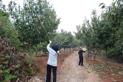 (村民正在打板栗 廖晶摄)