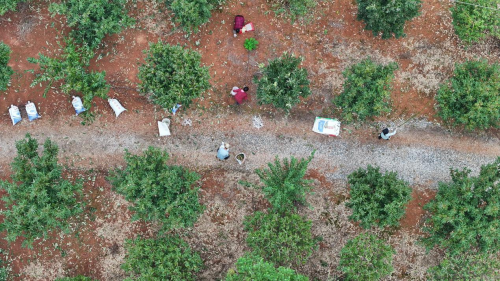 (村民捡拾板栗 廖晶摄)