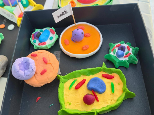 本次活动由十五中成章班生物教师、备课组长王小元牵头策划。为妥善统筹活动流程、保障活动质量,王小元老师提前制定详细方案,不仅制作包含作品样板的专属课件并分享至家长群,还积极联动家长形成教育合力 —— 在家长们的热情配合与悉心协助下,学生们充分发挥想象力与创造力,将无形的生物学知识转化为形态各异、细节丰富的手工模型,让细胞结构、生物器官等知识点以具象化的方式呈现。
