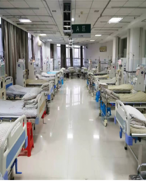 血透室拥有49台先进透析机,为300多位县域内长期透析患者提供服务。有高级职称医师3人,主治医师两人,专职护士19人,是一支经验丰富、专注血透、24小时待命的守护团队。