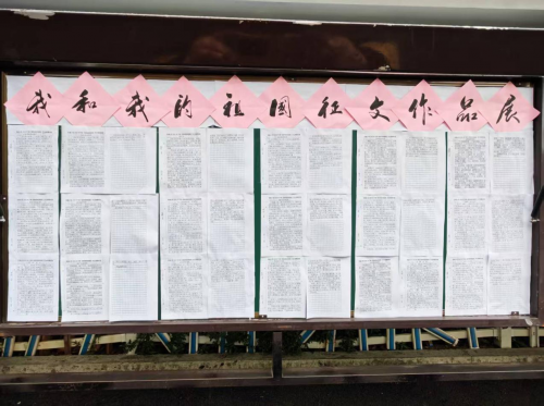 征文比赛现场,选手们积极投入,时而奋笔疾书,时而搁笔凝思,字里行间感受着家乡的变化,离不开祖国的关怀;学习英雄模范,舍小家为大家的家国情怀;歌颂伟大的祖国,科技发达,国泰民安……他们竭尽所能地发挥出自己的写作水平,涌现出一批情感真挚,内容充实,富有时代气息的优秀作品。学校制作精美的宣传栏,对优秀作品进行展示,供同学们欣赏学习。