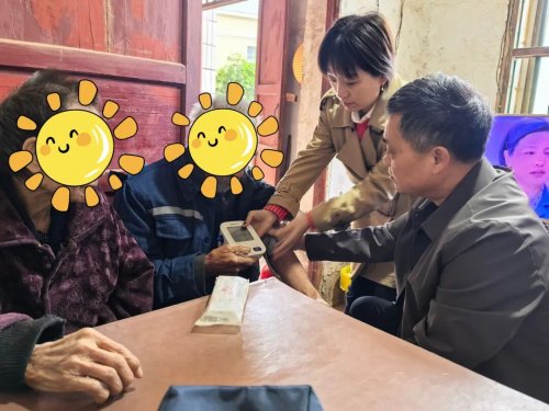 走访过程中,院领导带领驻村工作队队员入户服务,与村民面对面拉家常,细致询问健康状况与生活困难,并为其送上米、油等爱心物资和常用药品。针对行动不便的高龄老人与残疾人,现场为其测血压、测血糖,精准掌握基础健康指标,建立专属健康档案,详细记录病史、用药情况,精准发放对症药物并给予用药与随访建议,让特殊群体无需出门就能享受到专业的医疗服务。