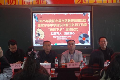 三角塘镇中心小学校长朱思鑫致辞时坦言,学校9个班级、300余名学生仅配1名音美专职教师,美育教学“资源薄、人手紧”,且作为“致美计划”项目校,11月音乐会筹备正遇难题,“此次名师送课,是为学校美育送‘良方’,让我们对落实新课改、提升学生审美素养更有底气”。 肖江华强调,“送课下乡”要实现“输血”与“造血”并重,既要带来优质课程,更要留下可复制的教学方法,助力乡村教师专业成长。邓德军结合常宁教研实际,提出“课堂示范见真章,课后研讨出实效”,推动送教资源与乡村教学深度融合。黄平荣则从区域教育均衡角度叮嘱:“要珍惜学习机会,希望与送教团队结下长期帮扶纽带,让优质美育资源扎根乡镇校园。” 常宁市教育局教研室音乐教研员、中学音乐名师工作室首席名师张君玉随后补充,“希望全体参与人员扎实落实活动各环节,让此次送课真正服务于乡村美育发展。”