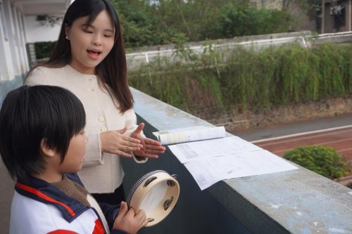 午后,社团辅导环节聚焦立冬音乐会7个备选节目,送教团队分组开展“一对一”指导,从合唱音准校准到课桌舞动作调整,师生同心打磨细节,每个节目均实现质的提升。随后的成果微展示中,操场化作舞台,赢得在场嘉宾与师生阵阵掌声,孩子们自信的笑容尽显乡村孩子的艺术潜力。