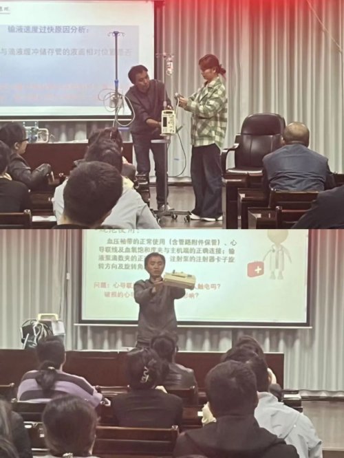 随后,设备科阳冰清通过理论讲解与实际操作演示相结合的方式,深入浅出地为大家介绍各类生命支持设备的操作要点以及常见故障的排查与解决方法。
