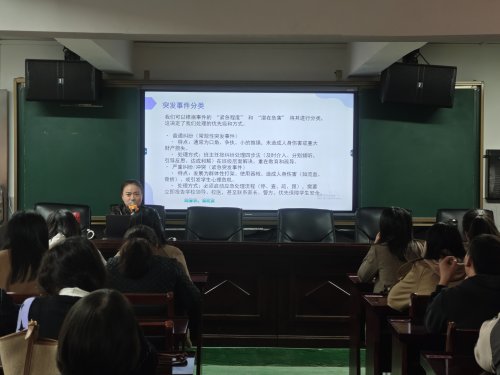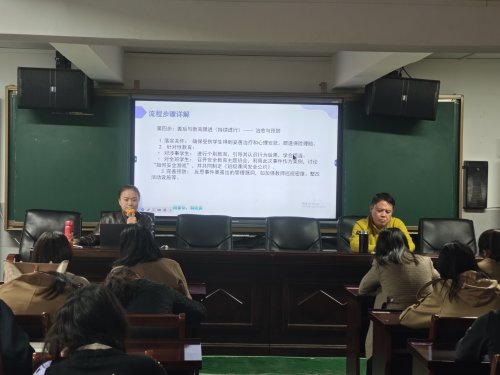 会议在明确而务实的氛围中拉开帷幕。学校德育处蒋主任作为主讲人,为与会教师带来了一场干货满满、直击痛点的专题分享。分享内容紧扣班主任日常工作的核心与难点,围绕“突发事件及学生纠纷的处理对策”与“家校沟通策略”两大主题,系统性地拆分为六大模块:预防为主策略、应急处理要点、纠纷调解技巧、家校沟通艺术等。