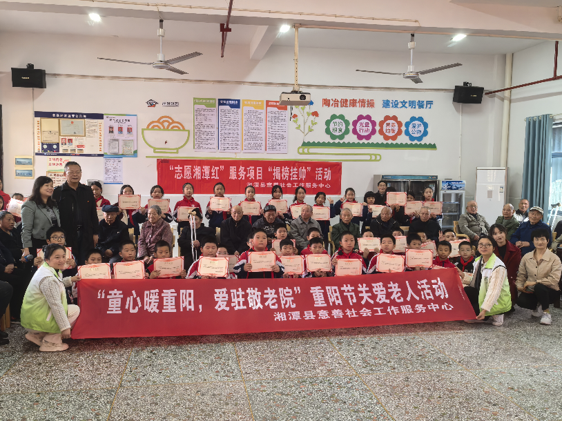 为大力弘扬中华民族尊老敬老的传统美德,重阳佳节期间,在湘潭县社工部及湘潭县民政局指导下,10月31日,湘潭县意善社会工作服务中心联合河口镇双板桥中心小学,走进湘潭县失能人员集中照护中心(河口镇敬老院),成功举办“童心暖重阳,爱驻敬老院”主题关爱活动。这是湘潭县意善社会工作服务中心自揭榜挂帅“我爱湘潭我的家·志愿湘潭红”老年人志愿服务项目以来的又一次落地实践。