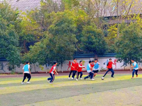 秋冬的冷风拂过绿茵场,却吹不散那股澎湃的激情与活力。近日,衡阳市第七中学的校园班级足球联赛正如火如荼地进行着,呐喊声、欢呼声与清脆的哨响交织成一曲动人的青春乐章,把整个校园笼罩在浓厚的足球氛围里。
