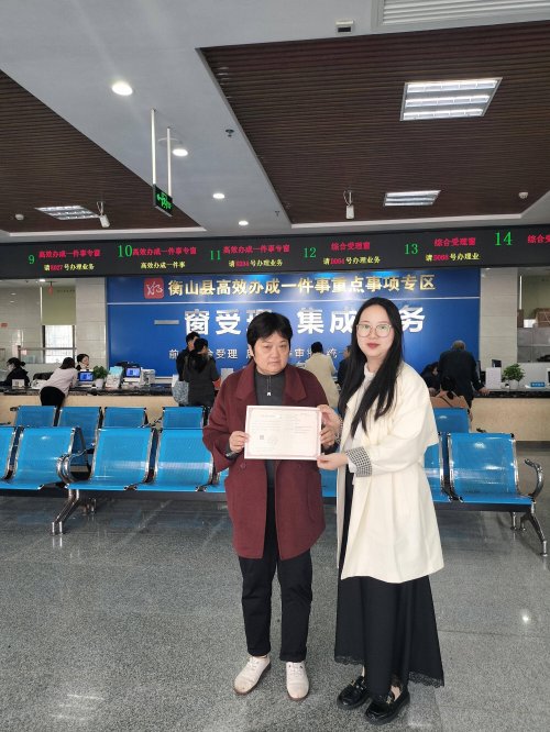 2025 年 11 月 5 日,衡山县不动产登记中心成功为市民曹女士核发首本 “居住权” 登记证明。“拿到这份证明,总算彻底打消了我们‘老有所居’的顾虑!” 曹女士手持证明,难掩安心与满意。
