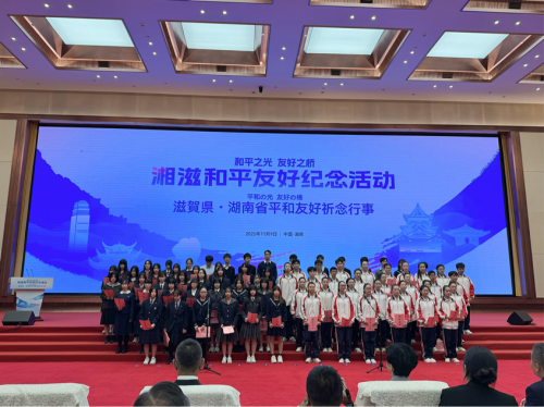 细雨润秋色,友谊暖人心。11月9日,衡阳市第七中学的30余名师生代表,在市外事办的精心组织下,奔赴长沙参与“湖南省与日本滋贺县和平友好纪念活动”。这场以“和平友好”为主题的中日青少年交流盛会,不仅是我市响应国家对外友好号召的生动实践,更让七中学子站上了国际舞台,用青春之声传递中国青少年的自信与热忱!