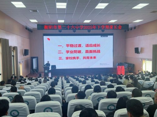 此次家长会既是家校信息互通的“连心桥”,更是协同育人的“动员令”。衡阳市第二十六中学将以此次会议为新起点,持续深化家校合作机制,创新沟通渠道,丰富共育形式,让学校教育与家庭教育同频共振、同向发力,为每一位学生的全面发展、健康成长保驾护航,共同谱写衡阳教育高质量发展的崭新篇章。