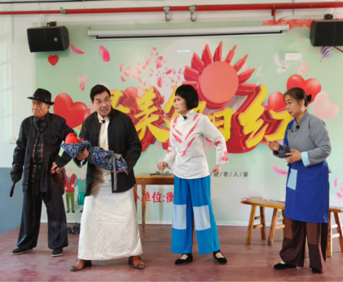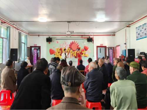活动现场氛围温馨融洽,经典京剧选段《武家坡》《卖水》轮番上演,字正腔圆的唱腔、娴熟精湛的演技引得老人们阵阵喝彩;极具本土特色的《岳北山歌》与红色独幕剧《毛泽建狱中情》接连亮相,既彰显地方文化韵味,又传递红色精神力量。工作人员全程贴心服务,主动搀扶行动不便的老人们就座观演,演员们还与老人们亲切互动,现场暖意融融,老人们看得津津有味、笑容满面。
