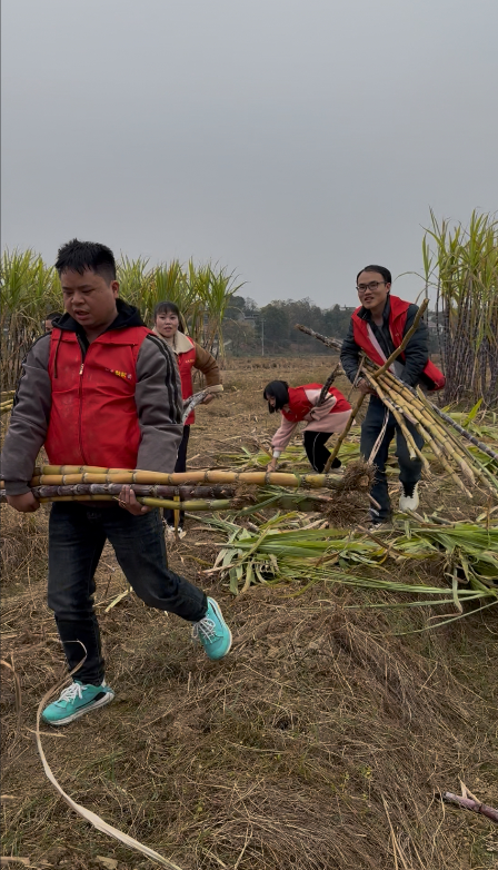 12月5日,国际志愿者日的暖阳温柔洒满祁东县灵官镇大同村的田野。10余名身着红马甲的祁东互联网帮帮团志愿者,与俊虹超市工作人员并肩穿梭在郁郁苍苍的甘蔗林中,砍蔗、剥叶、打捆、过秤、装车,一连串动作娴熟利落、忙碌有序,用一场热气腾腾的暖心助农行动,为身残志坚的种植户程勇军破解了上万斤甘蔗的滞销困境,让志愿之光照亮冬日田埂。