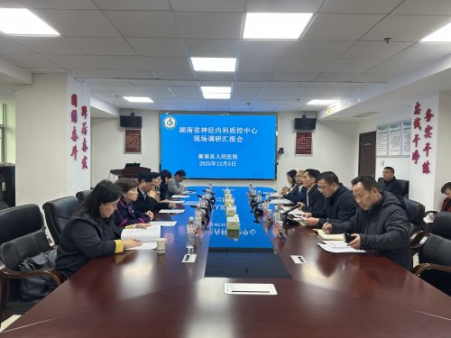 12月5日下午,湖南省神经内科质量控制中心专家组一行莅临衡南县人民医院,对该院神经内科质量控制工作开展专项现场调研。衡南县人民医院领导班子、相关科室负责人参与调研。