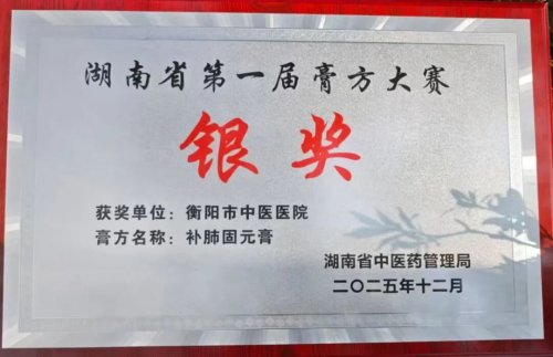 近日,衡阳市中医医院自制的“补肺固元膏”在湖南省首届膏方大赛中荣获银奖,并在2025年湖南省膏方节颁奖典礼上进行展示。