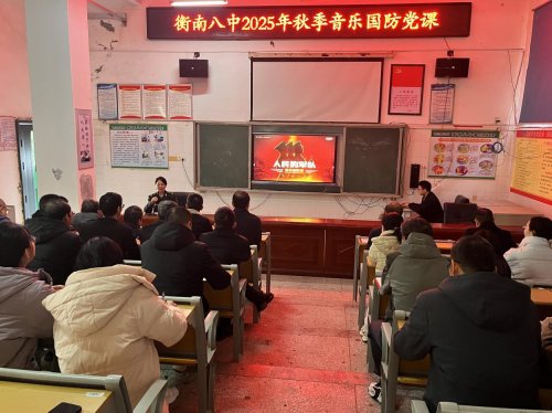 (通讯员 胡海姣 胡振山 蒋媛竹 )12月25日,衡南八中阶梯教室座无虚席,一场别开生面的音乐国防党课在此开讲。衡阳市党史馆副馆长唐丛玉以历史为经、音乐为纬,为全体党员织就一幅壮阔的国防画卷。