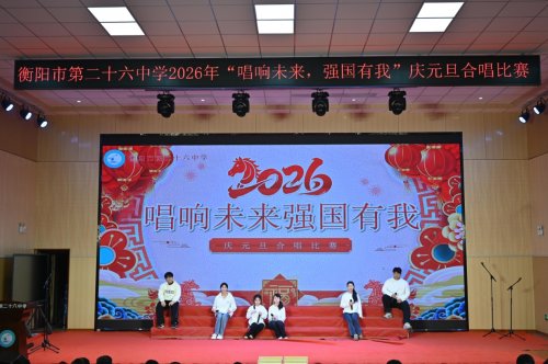 12月30日晚,衡阳市第二十六中学“唱响未来 强国有我”庆元旦班级合唱比赛在学校博雅楼多媒体会议室隆重举行。全校24个班级的学子们以饱满的热情、嘹亮的歌声和真挚的情感,献上了一场精彩的视听盛宴,充分展现了新时代青年昂扬向上的精神风貌和深厚的家国情怀。