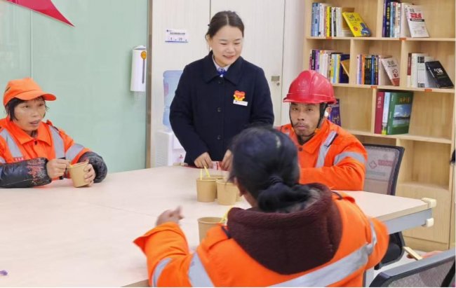 活动当天,工作人员将热气腾腾的烤梨精心分装。随着户外劳动者们结束了清晨的第一轮工作,接过该行工作人员递上的一杯杯暖手又暖心的烤梨汤,不仅驱散了户外劳动者身上的寒意,更熨贴了疲惫的身心。