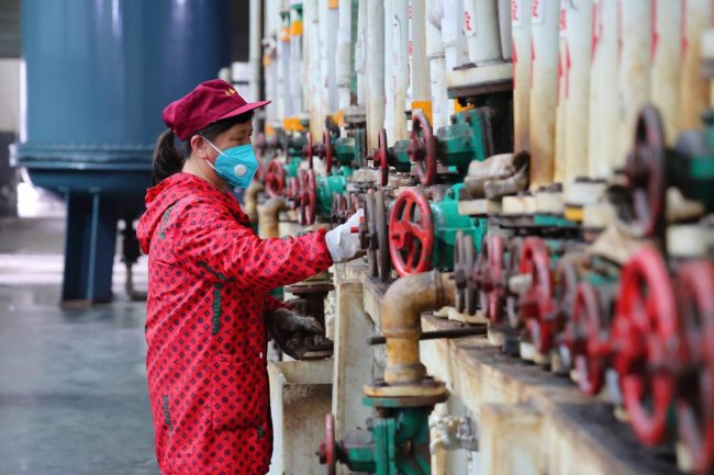 3月25日,湖南金泰新材料有限公司生产车间正加足马力(蒋鹏摄)