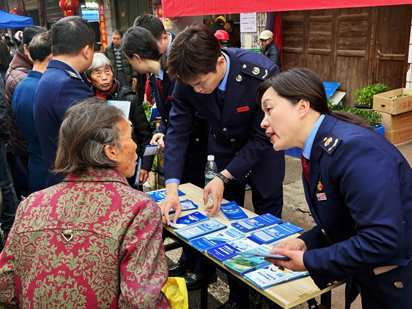 “走过路过莫错过,免费资料放心拿!” 接地气的吆喝声、整齐摆放的宣传资料,引得不少赶集群众纷纷驻足。税务干部热情分发手册、主动与群众拉家常,在柴米油盐、家长里短的闲聊中,把大家最关心的社保缴费、个人所得税等政策,拆解成通俗易懂的身边事,用地道的衡阳话讲细讲透。一位老人在弄清养老金缴纳、领取相关事宜后,紧紧握住工作人员小周的手感慨道:“你们专程跑这么远来给我们讲政策,心里真是暖洋洋的。”