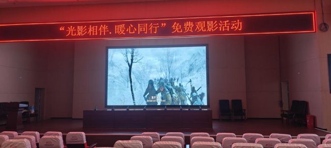 活动现场,护理部与后勤保障团队精心布置场地,调试好影音设备,并贴心准备了温开水、靠垫等物品。针对行动不便的患者,医院专门设置“爱心专座区”,安排志愿者全程陪同守护,让大家在舒适安心的氛围中享受光影时光。