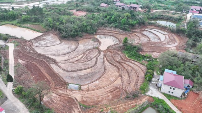 在黄周村,58.6亩因气候冻害导致果树枯死的地块,也曾是耕地利用的“痛点”。乡村两级因地制宜,制定分类改造方案:先用挖机清理田间杂树杂草,再用耕田机精细化整地,同步推进水塘加固、抗旱电路铺设、机耕路修建,从根源上解决耕种难题。