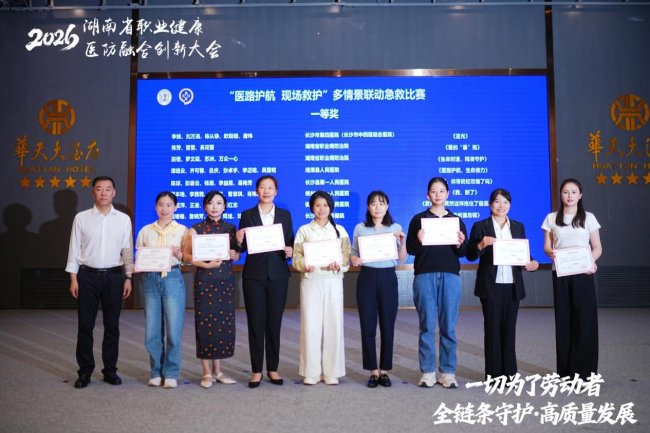 (作者 陈颖 邹勇)2026年4月9日,“2026湖南省首届职业健康医防融合创新大会——医路护航·现场救护多情景联动急救比赛”在长沙圆满落幕。衡阳市第一人民医院两支参赛团队凭借过硬的专业素养、创新的科普形式与默契的团队协作,在54个优秀作品中脱颖而出,分别荣获一等奖和三等奖。