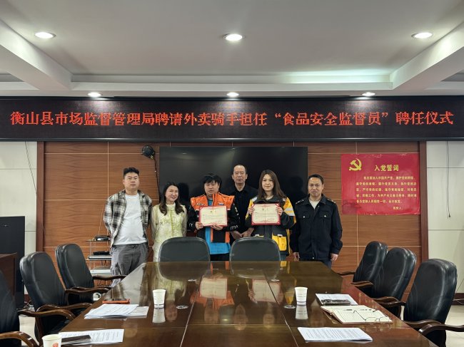 衡山县市场监管局举行外卖骑手 “食品安全监督员”聘任仪式