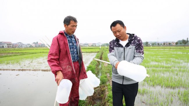 “往年二化螟爆发时,光农药就打了五六次,不仅花钱费力,还怕农药有残留。今年县里又添新设备,还有这些‘田间小灯笼’帮忙,一台喷雾机管好几亩,‘小灯笼’也能精准诱杀成虫,不用频繁打药,预计二化螟会明显减少,种粮也更安心了!”看到自家农田里的“双重保护伞”,衡山县白云农机服务专业合作社负责人汤光斌满脸笑意。